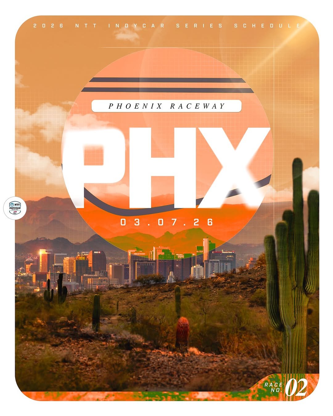 Retorno ao Phoenix Raceway (Arizona), no oval de 1 milha, em 7 de março — será parte de um fim de semana especial em conjunto com corridas da NASCAR.